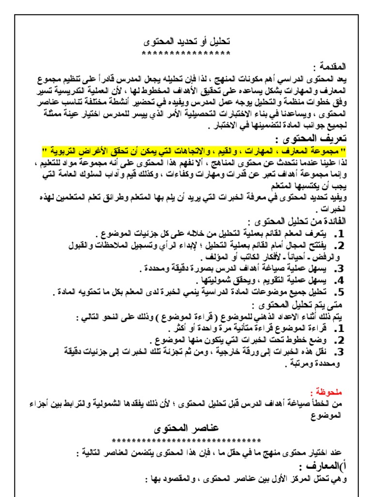 هام للمعلمين تحليل المحتوي الدراسي نواتج التعلم وخريطة المنهج