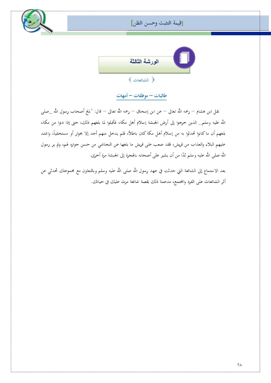 مدونة جواهر الجبير برنامج المصلى للفصل الدراسي الثاني لعام 1437 1438هـ بعنوان التثبت وحسن الظن