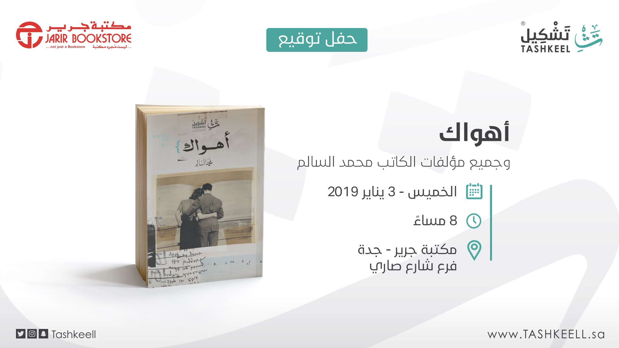 تشكيل Na Twitteru ندعوكم لحضور حفل توقيع كتاب أهواك وجميع مؤلفات الكاتب محمد السالم الخميس ٣ يناير ٨ مساء مكتبة جرير مدينة جدة فرع شارع صاري Https T Co Sydgbmfcax