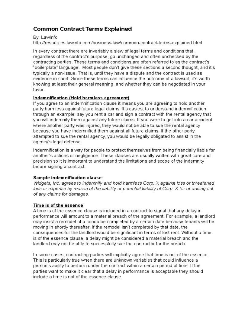 05 Common Contract Terms Explained 1 Indemnity Liquidated Damages